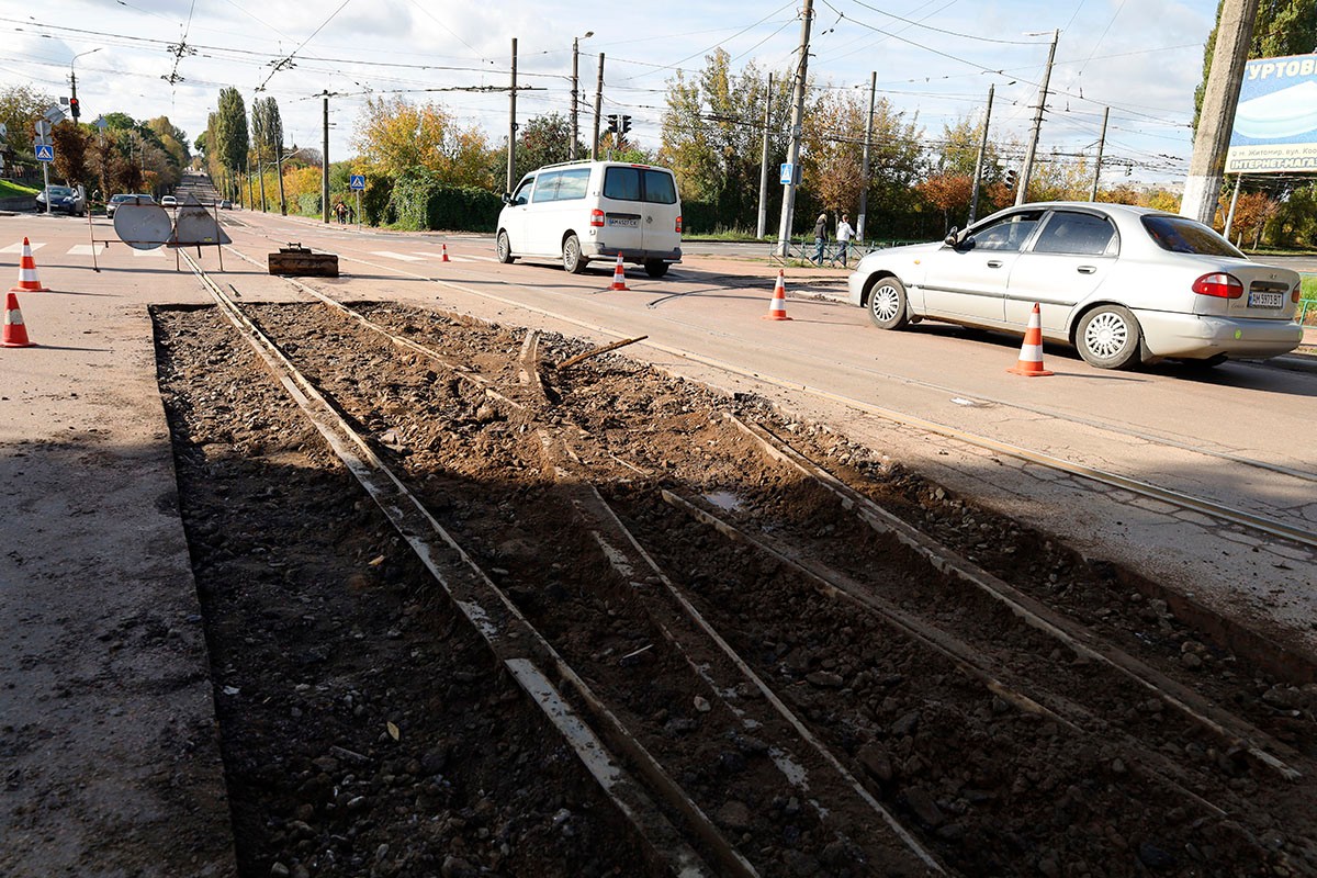 Трамваї добу не курсували: на Корольова у Житомирі проводили ремонт трамвайної колії
