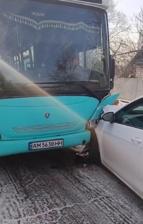 - Близько 11:20: Зіткнулися автобус Scania, що прямував у напрямку міста, та Volkswagen e-Golf, який рухався йому назустріч.