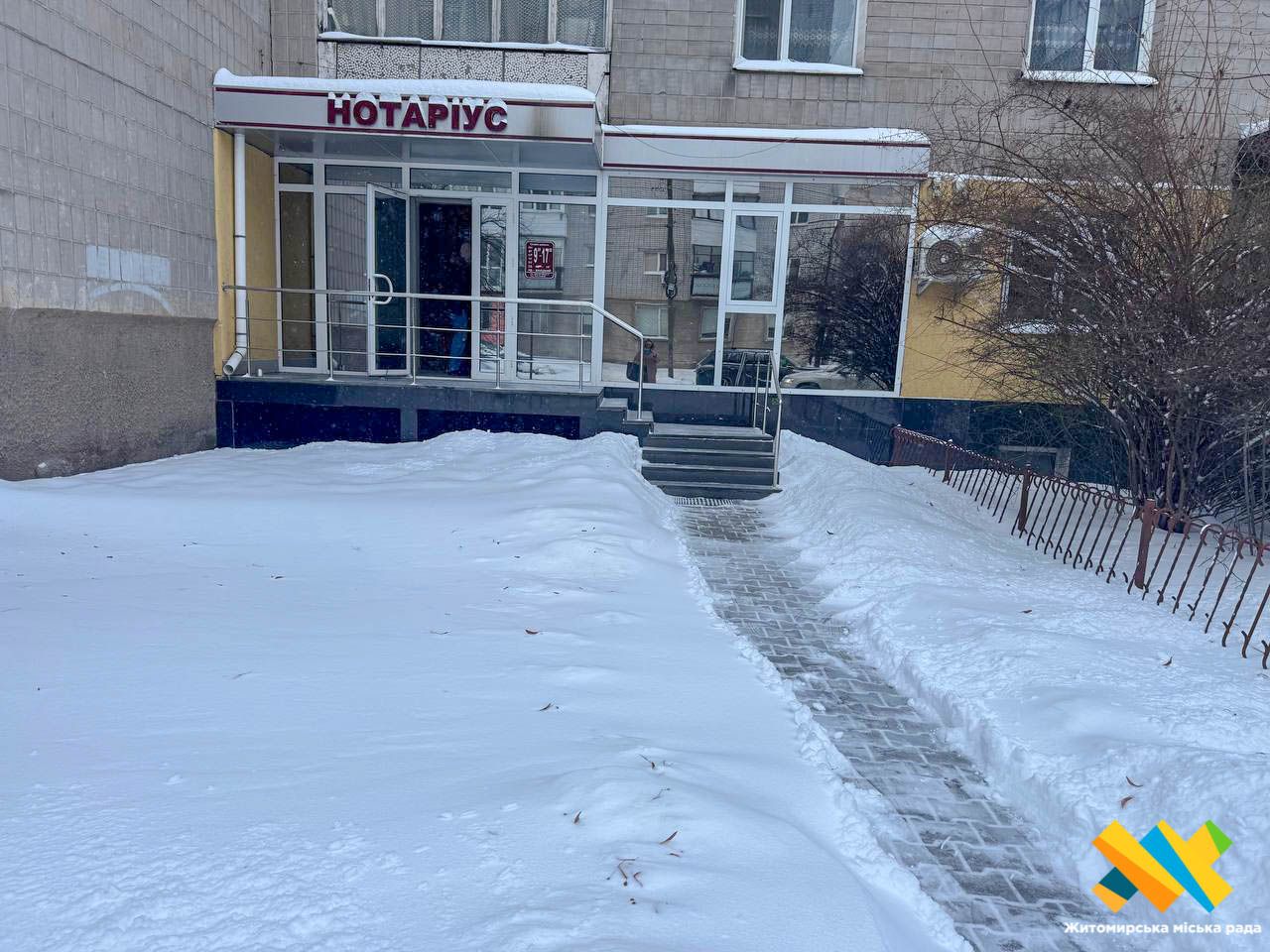 На робоче місце раніше прийшла і нотаріус Леся Кузьміна. О 8:30 вона вже розчищала сніг біля власного офісу.