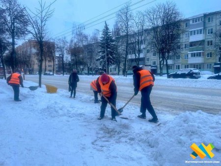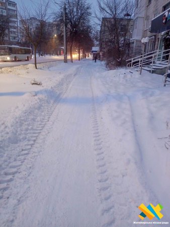 Тротуари міста прибирають і посипають понад 90 працівників підрядних організацій, задіяно 11 одиниць тротуарної техніки, повідомляють у Житомирській міській раді.