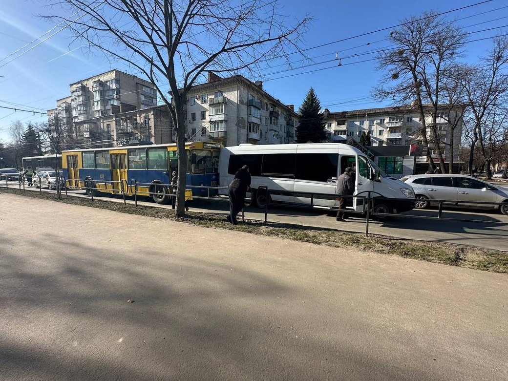 За її словами, перша автопригода за участю тролейбуса сталася близько 14:30 на розі вулиць Київської та Князів Острозьких.