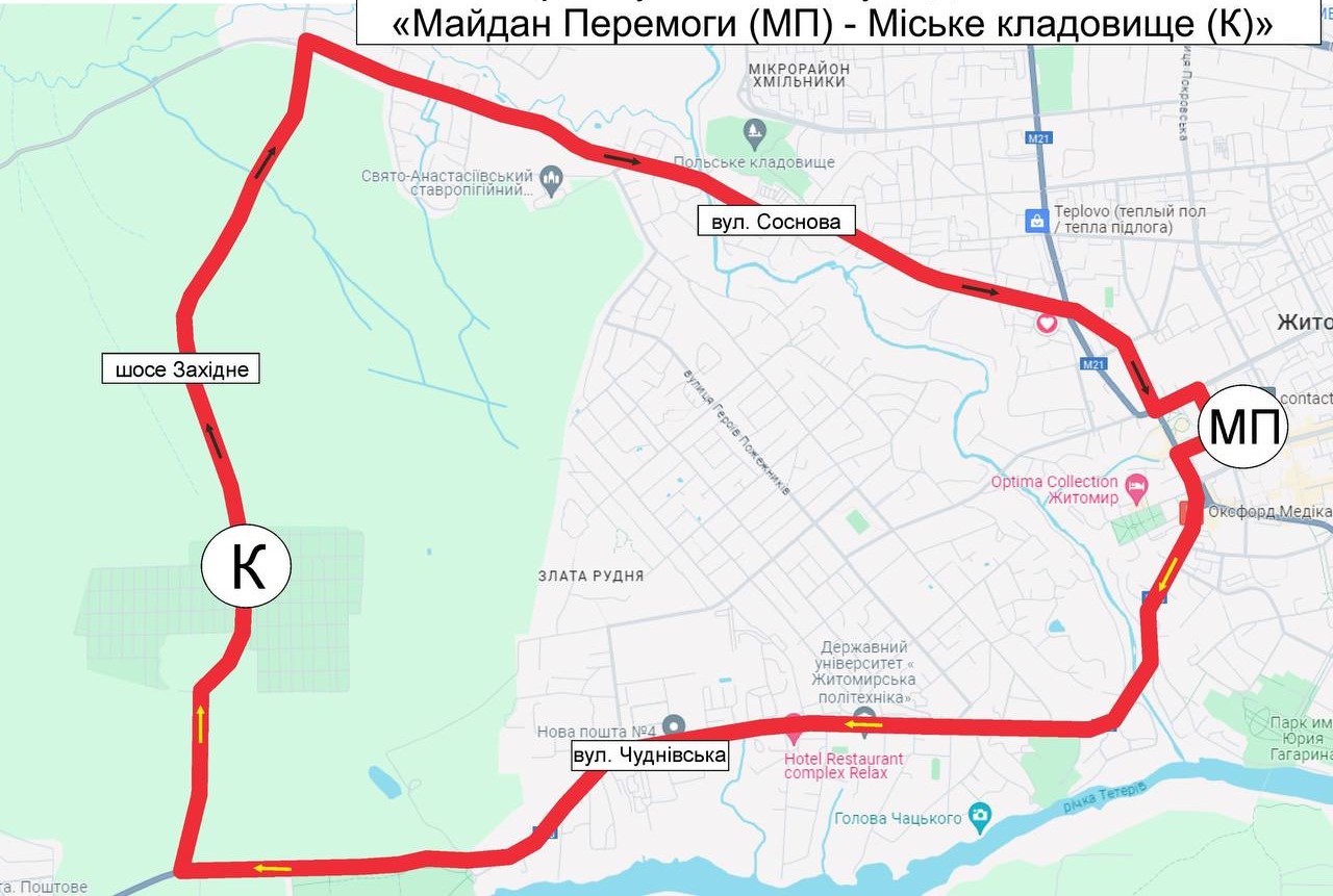 Нагадаємо, у Провідну неділю, 19 квітня, з 07:00 у районі Корбутівського кладовища рух автомобільного транспорту Західним шосе здійснюватиметься в односторонньому напрямку — від Чуднівського шосе у напрямку Богунії (до вул. Соснової). Вантажні транспортні засоби та спецтехніка будуть перенаправлені через місто Житомир.